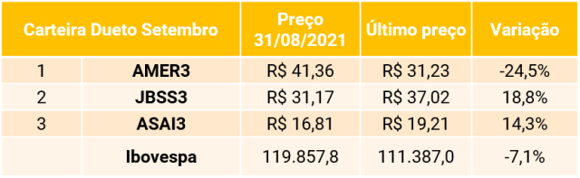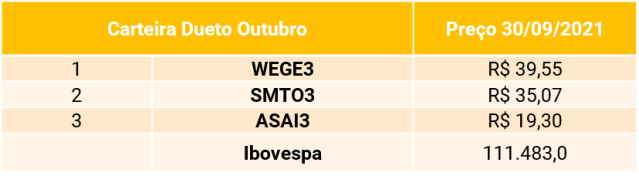 Trazemos três ideias de empresas que estão bem avaliadas pelos nossos analistas fundamentalistas, liderados pelo estrategista-chefe da XP, Fernando Ferreira, e selecionamos, dentre essas companhias, quais estão em um momento interessante de compra, avaliado pelo nosso time de análise técnica, liderado por Gilberto Coelho, um dos melhores analistas do mercado. Neste mês, optamos por 2 mudanças em relação ao relatório anterior: saem da carteira WEG (WEGE3) e Multiplan (MULT3), entram JBS (JBSS3) e Assaí (ASAI3).