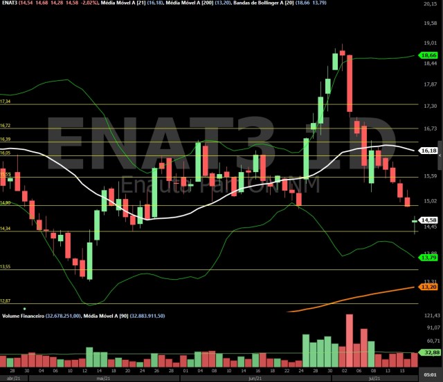 ENAT3 – deixou formação de reversão altista, rompendo a máxima de 19/07 indicará altas buscando 15,55/17,34