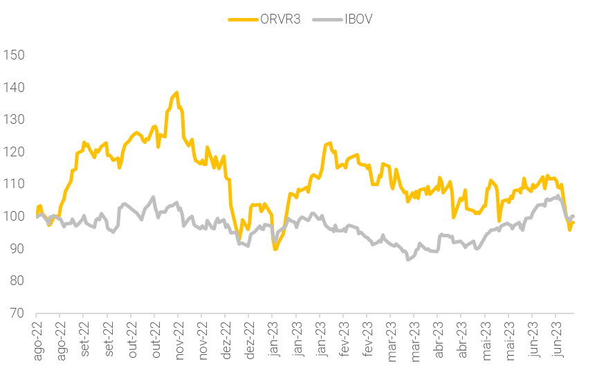 • A preços atuais, vemos o ORVR sendo negociado a uma TIR real de 11,8%. Temos um preço-alvo para o final de 2026 de R$67,7/ação, usando um custo de capital próprio real de 10,0%. Mantemos recomendação de compra para a ORVR.