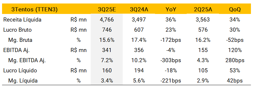 3Tentos (TTEN3) | Prévia dos resultados do 3T25: Forte crescimento da receita e um trimestre sólido