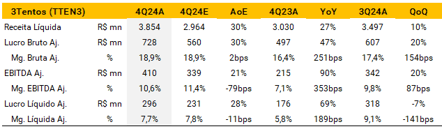 3Tentos (TTEN3) | Revisão de Resultados do 4T24: Um Resultado Bem-Vindo