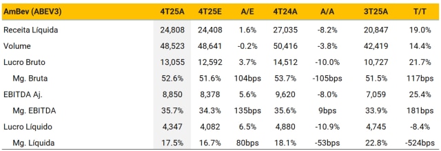 AmBev (ABEV3) | Revisão dos resultados do 4T25: fechamento negativo do ano com um resultado morno