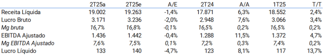O Assaí reportou resultados do 2º trimestre aproximadamente em linha, com uma dinâmica de receita um pouco mais fraca compensada por despesas de venda mais controladas.