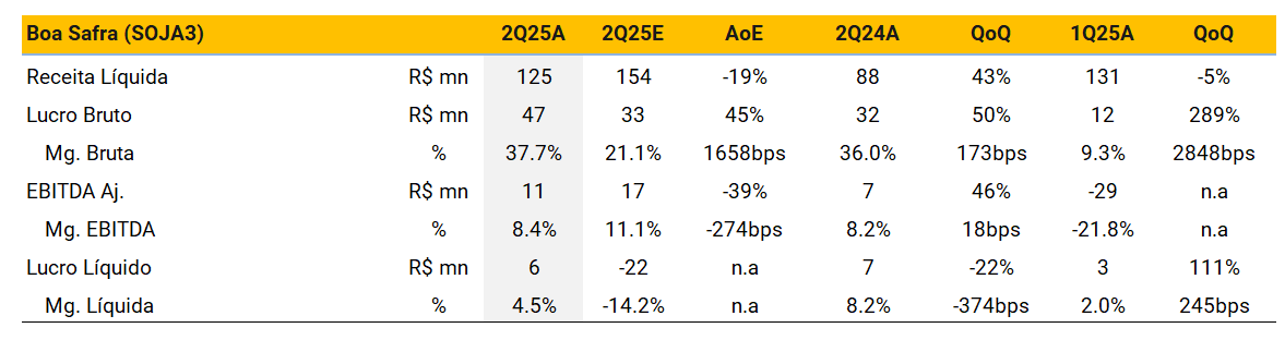 Boa Safra (SOJA3) | Revisão de resultados do 2T25: Redução de riscos no case de investimento
