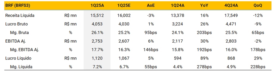 BRF (BRFS3) | Resultados do 1T25: Um Trimestre Forte, Compensando a Sazonalidade