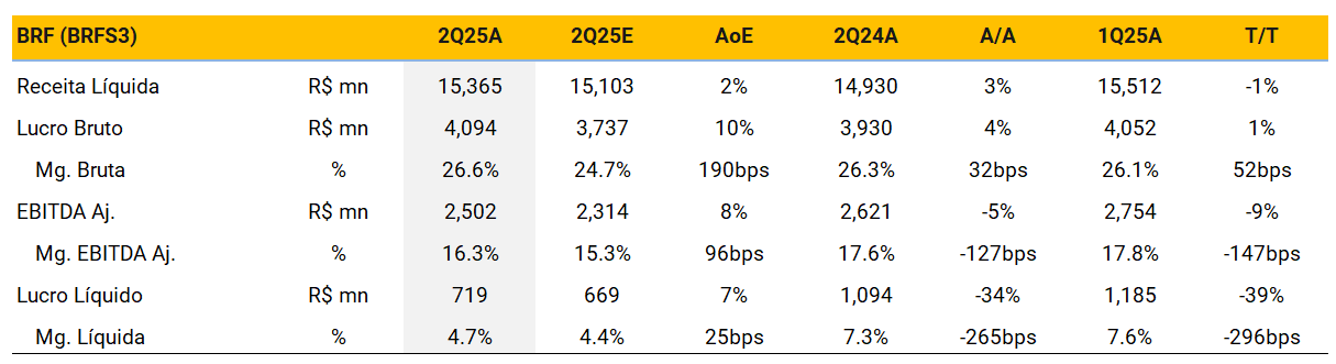 BRF (BRFS3) | Revisão de resultados do 2T25: uma surpresa bem-vinda com a fusão em evidência