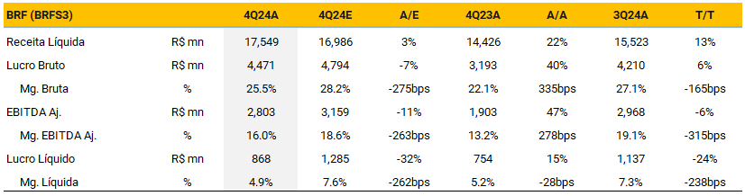 BRF (BRFS3) | Revisão de resultados do 4T24: fechamento suave de um ano histórico
