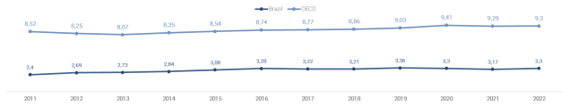 Figura 1: Penetração do setor de seguros no Brasil em comparação com a OCDE como % do PIB