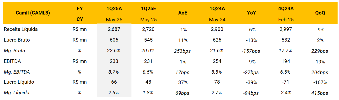 Camil (CAML3) | Revisão de resultados do 1T25 (Mai/25): Início de ano pouco empolgante