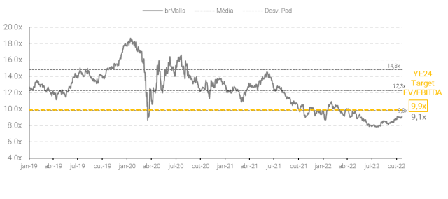 Vemos a aquisição como positiva para as operações da empresa, em termos de estratégia de alocação de capital. Além do atrativo cap rate da aquisição, o shopping deverá passar por um processo de renovatórias de contratos de aluguel em 2023, o que em nossa visão pode gerar um ajuste significativo nos aluguéis, dado o sólido desempenho que o shopping vem reportando.