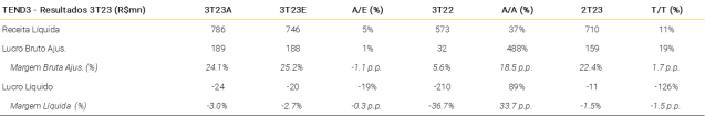 Tenda (TEND3) | Expansão da margem bruta compensada por lucro líquido fraco