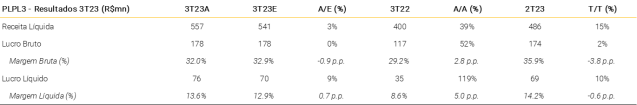 Temos uma avaliação positiva dos resultados da PLPL, reiterando nossa recomendação de compra e preço alvo de R$ 12,50/ação.