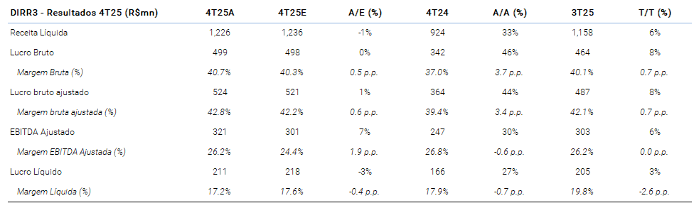 Confira nossa visão sobre os resultados da Direcional (DIRR3) do 4T25