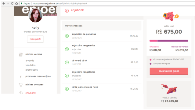 - Carteira digital que suporta a plataforma e dá segurança em todas as transações realizadas no Enjoei.