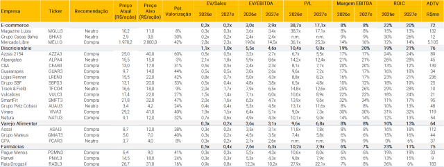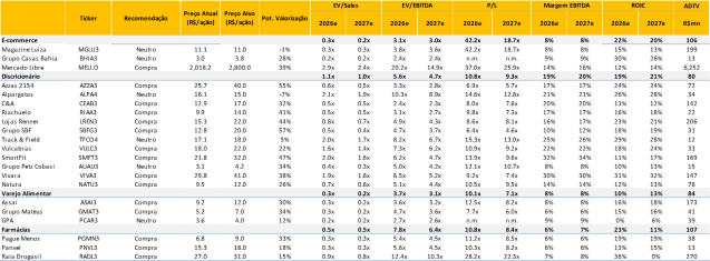 Quais tópicos abordamos ao longo do conteúdo? (i) Notícias no Brasil e no mundo que tem impactos diretos ou indiretos no setor; e (ii) Nossa tabela de múltiplos, atualizada todos os dias.