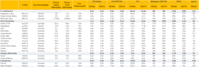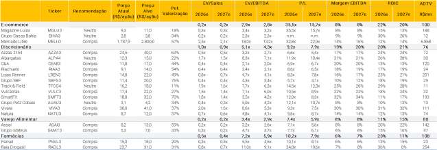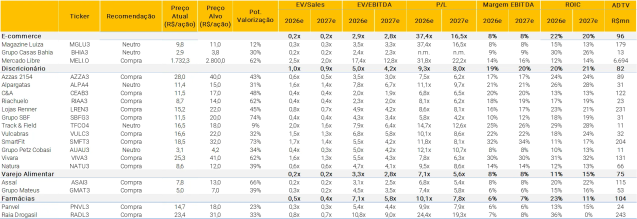 Quais tópicos abordamos ao longo do conteúdo? (i) Notícias no Brasil e no mundo que tem impactos diretos ou indiretos no setor; e (ii) Nossa tabela de múltiplos, atualizada todos os dias.