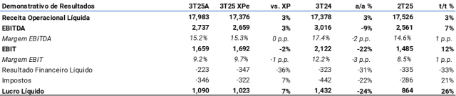 A Gerdau reportou resultados em linha, com EBITDA ajustado de R$ 2,7 bilhões +7% T/T (+3% XPe), refletindo um sólido desempenho na América do Norte, parcialmente compensado por um desempenho mais fraco no Brasil. Destacamos: (i) desempenho robusto no BD da América do Norte, devido a melhores volumes de vendas (+3% T/T) e preços (+1% T/T em USD), com sólidos níveis de backlog (encerrando o trimestre em ~70 dias) apoiados por maior protecionismo em meio à expansão da Seção 232; (ii) desempenho mais fraco no BD Brasil (margens -2 p.p. T/T), refletindo preços domésticos mais baixos (-4% T/T), parcialmente compensados por menor CPV/t (-8% T/T) e maiores volumes (+17% T/T); e (iii) FCF positivo de R$ 1,0 bilhão, com liberação capital de giro, e menores despesas financeiras/pagamentos de imposto de renda no 3T25. Por fim, a Gerdau anunciou dividendos de R$ 0,28/ação (dividend yield anualizado de 6,0%) a serem pagos a partir de 11 de dezembro. Reiteramos nossa recomendação de Compra na Gerdau, com upside assimétrico em valuation, em nossa visão.
