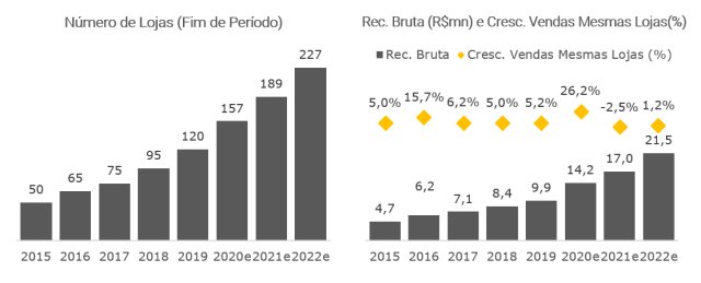 - Mesmo assumindo crescimento zero para ambos os formatos a partir de 2022e (o que é altamente improvável, na nossa opinião), ainda vemos um potencial de alta entre 15%-20% para o preço da ação.