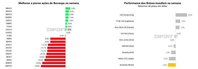 O Dólar fechou a semana com alta de +0,98% em relação ao Real, em R$ 5,38/US$. Já a curva DI para o vértice de janeiro/31 abriu +18bps na semana, atingindo 13,41%.