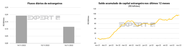 No Brasil, notícias relacionadas à PEC de Transição e a possíveis quadros que podem integrar o governo a partir do ano que vem seguem como principal tema para o mercado. No campo de dados econômicos, dados fiscais e de setor externo referentes a outubro, assim como a prévia da inflação de novembro serão destaque