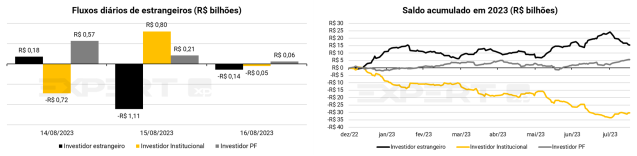 Fonte: Bloomberg, Research XP. Dados de fluxo até 16/08/2023.