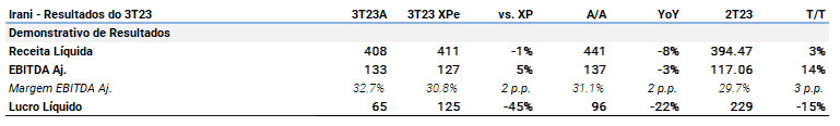 Irani (RANI3) | Resultados do 3T23: Resultados melhores que o esperado; Margens estão se mantendo mais altas