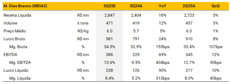 M. Dias Branco (MDIA3) | Prévia dos resultados do 3T25: elevando as estimativas, mas permanecendo neutro