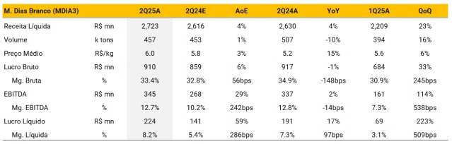 M. Dias Branco (MDIA3) | Revisão de Resultados do 2T25: Surpresa positiva deve provocar revisões altistas nos lucros