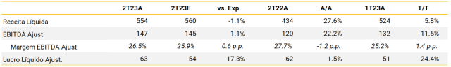 Maturação gradual. A receita aumentou 6% T/T (em linha com XPe) impulsionada por: (i) um aumento de 2,6% no número de leitos operacionais, para 1.572 leitos; (ii) um aumento de 2,1 p.p. na taxa de utilização, para 72,8%; e (iii) uma queda de 1% no ticket médio, dado que os hospitais mais recentes ainda estão em fase de maturação. A empresa destacou que a sazonalidade afetou a utilização devido aos feriados locais no Nordeste. Além disso, vale ressaltar que apenas 63% dos leitos estão atualmente em operação, o que significa que ainda há muito espaço para a empresa continuar crescendo sem a necessidade de investimentos significativos.