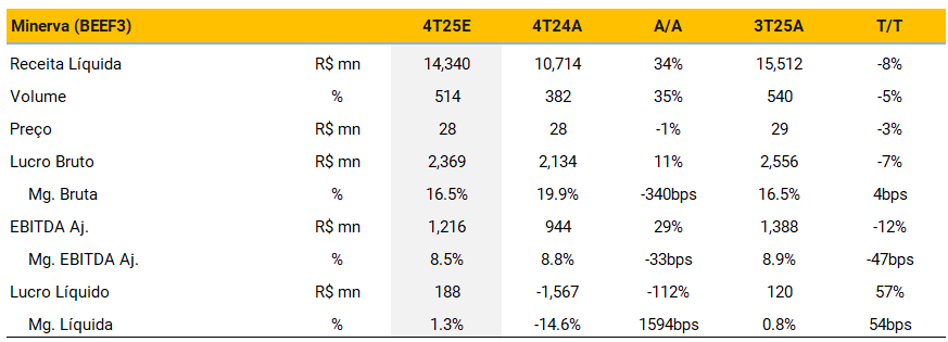 Minerva (BEEF3) | Prévia de Resultados do 4T25 e downgrade: relação risco-retorno já não é tão atrativa