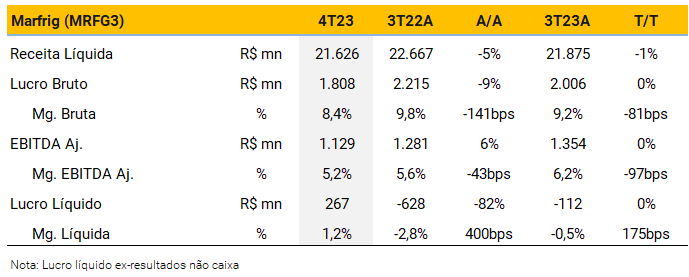 Marfrig (MRFG3) | Prévia do 4T23: resultados mistos, com Brasil como destaque positivo