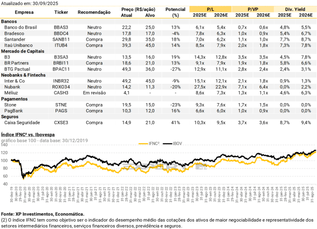 Quais tópicos abordamos ao longo do conteúdo? (i) Notícias da indústria bancária, seguros, pagamentos e demais notícias do setor financeiro que tem impactos diretos ou indiretos no setor; e (ii) Nossa tabela de múltiplos, atualizada com os preços de todas as sextas-feiras de cada semana.