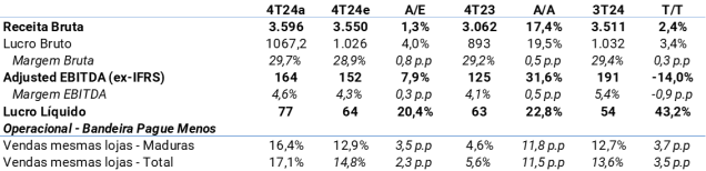 A Pague Menos reportou resultados do 4T24. Veja mais detalhes abaixo