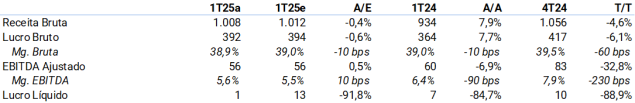 As vendas brutas consolidadas aumentaram 8% a/a, impulsionadas pelo SSS (+6%) e pela abertura de lojas (+14 nos últimos 12 meses). Por canal, o crescimento foi relativamente equilibrado entre lojas físicas (+10%) e digital (+8%), enquanto o B2B foi o ponto fraco (-25%), já que os canais próprios ganharam força.