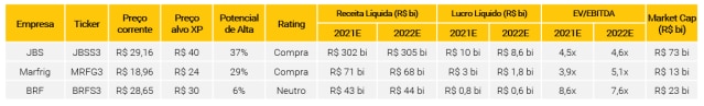 Especificamente, esperamos que as margens dos frigoríficos presentes nos Estados Unidos se acomodem aos níveis históricos ao longo dos próximos anos. Já na América do Sul, especialmente no Brasil, entendemos que o ciclo pecuário deve ser positivo a partir de 2022/23, o que poderia favorecer a recuperação de margens na região. De qualquer forma, quaisquer eventos que afetem negativamente tais margens, seja nos EUA, seja na América do Sul, podem prejudicar nossos preços-alvo.