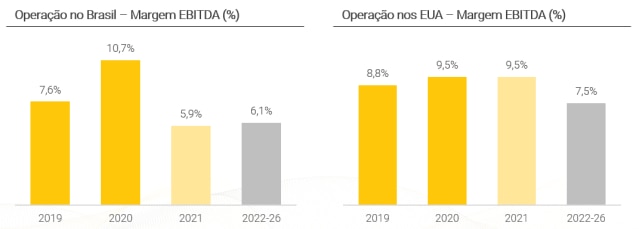 - O câmbio desvalorizado permite que as operações no Brasil se mantenham competitivo nas exportações, ao mesmo tempo em que também impulsiona os resultados nos EUA
