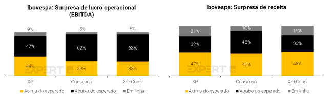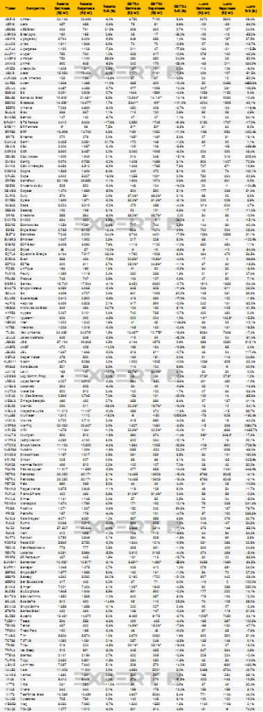 Considerando as empresas cobertas pela XP e incluídas no índice Ibovespa, o EBITDA ficou, em média, -3,8% abaixo de nossas expectativas, enquanto as receitas surpreenderam em +1,4% em relação às nossas estimativas.