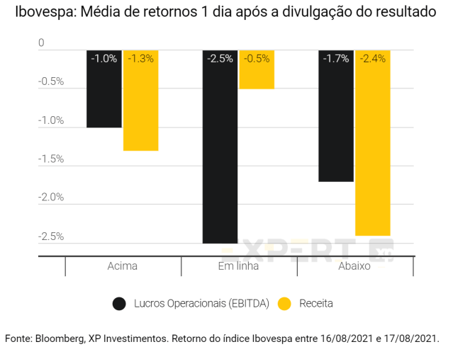 Apesar desses fortes resultados na temporada de resultados, a reação nos preços das ações foi negativa de forma geral, seguindo o movimento do mercado. As empresas que surpreenderam as estimativas do consenso quanto aos Lucros Operacionais e Receita tiveram um desempenho médio de -1,0% e -1,3%, respectivamente, um dia depois de cada divulgação. Enquanto isso, as companhias que desapontaram as expectativas foram mais penalizadas, com uma média de desempenho de –1,7% e -2,4% para os mesmos indicadores. E o índice Ibovespa, por sua vez, registrou uma queda de -5,7% desde o início da temporada, sendo pressionado por um aumento de incertezas políticas e riscos fiscais desde então.