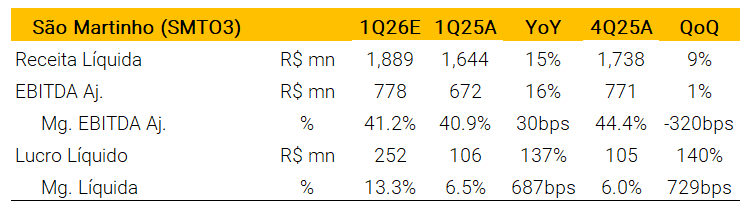 Prévia dos resultados do 1T26; Atualização de estimativas e preço-alvo
