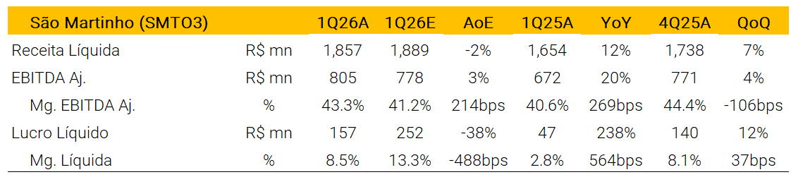 São Martinho (SMTO3) | Revisão dos resultados do 1T26: ganhos no etanol, ventos contrários no açúcar