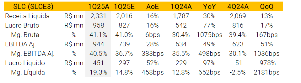 SLC (SLCE3) | Revisão de resultados do 1T25: Resultados sólidos; FCF negativo devido à fase de expansão