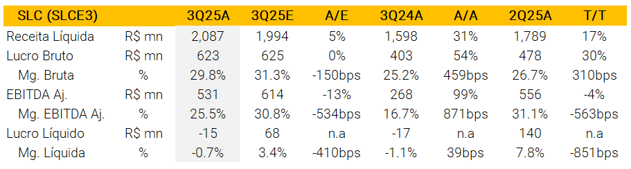 SLC (SLCE3) | Revisão de Resultados do 3T25: acordo de monetização de terrenos em destaque