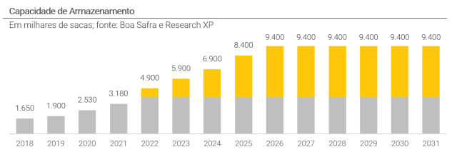 Os dois armazéns próprios da Boa Safra, em Buritis e Cabeceiras, possuem uma vantagem relevante: neles, existe amplo espaço para expansão dentro da estrutura corrente. Isso deve permitir que a empresa aumente sua eficiência operacional ao expandir sua capacidade de armazenagem sem ter que realizar grandes obras em outros locais para tanto. Para garantir que tal crescimento dentro da mesma região seja sustentável, a Boa Safra auxilia seus integrados a aumentar a produtividade de suas lavouras, de maneira a garantir um suprimento saudável de sementes para a expansão da operação.