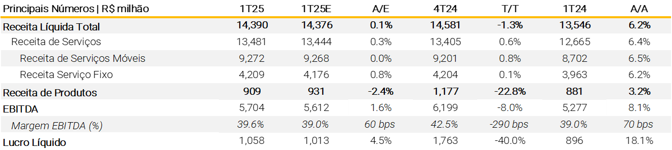 Telefônica Brasil (VIVT3) | Revisão do 1T25: Receita em linha com margem acima; divulgação positiva sobre benefícios do novo regime