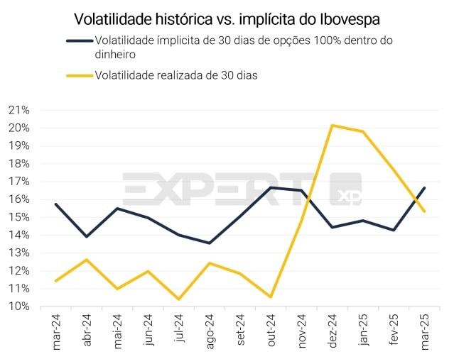 Além disso, ao considerar a volatilidade durante a temporada de resultados, o mercado demonstrou atraso no ajuste de expectativas — não antecipando os choques de lucros em fevereiro (volatilidade implícita < realizada) — e reagindo em excesso ao precificar maior risco para março, que acabou não se concretizando integralmente.