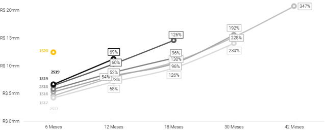 - Principais premissas do cenário base: (i) margem EBITDA de longo prazo de 16,0%; (ii) 2,0% de participação de mercado até 2025e; e (iii) 2,0x EV/Receita para 2021 de múltiplo alvo, em linha com os níveis atuais.