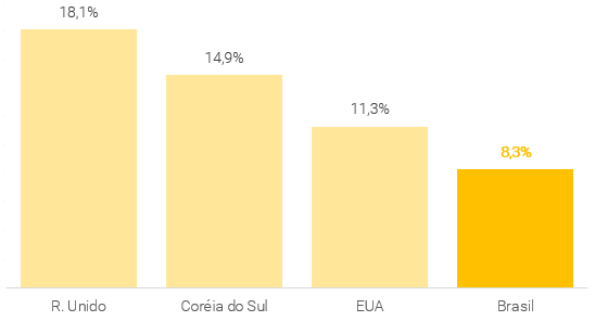 A penetração do ecommerce da categoria está bem abaixo de outros países, com o Reino Unido sendo o mais penetrado, com 18%. Além disso, acreditamos que o desenvolvimento de iniciativas multicanais e a mudança na mentalidade dos consumidores em relação às compras online durante a pandemia devem contribuir para aumentar essa penetração em todo o mundo.