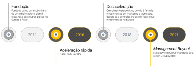 A Westwing foi fundada como subsidiária da Westwing Alemanha em 2011. Em 2016, a controladora decidiu concentrar seus investimentos na Europa, despriorizando os investimentos em suas subsidiárias (Brasil e Ásia) e, consequentemente, desacelerando o crescimento. No entanto, no final de 2018, a Axxon Group (uma empresa de private equity brasileira) patrocinou um management buyout pelos co-fundadores da subsidiária, com a cisão sendo concluída no 1o semestre de 2019. Desde então, a empresa tem investido na construção de sua equipe (equipe de marketing estava centralizada na Alemanha, por exemplo), bem como no reforço de áreas-chave (equipe de tecnologia própria de menos 20 pessoas para mais de 70 atualmente). E agora, a empresa está focando no fortalecimento de sua marca, aprimorando a logística e investindo no crescimento do negócio.
