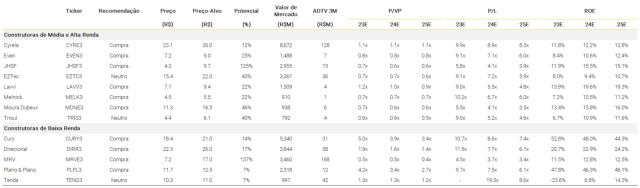 (ii) Nossa tabela de múltiplos, atualizada com os preços das empresas de nossa cobertura;