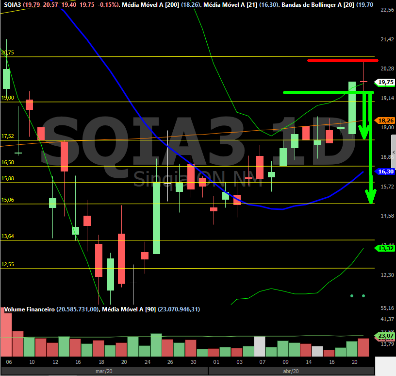 SQIA3 | 1º alvo atingido novo Stop 18,85